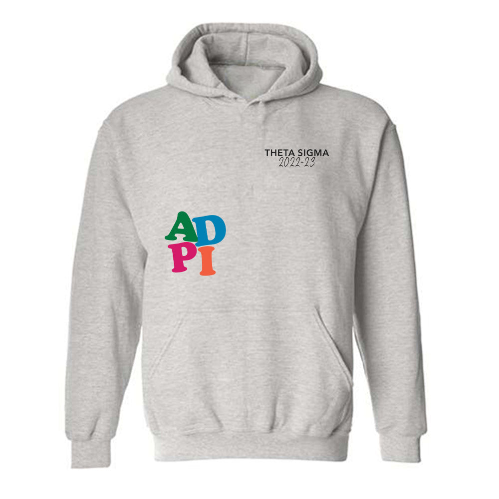 Officially Licensed Hooded Sweatshirt for Alpha Delta Pi. Your order will be printed & made to order in 3-7 business days once you have placed your order!