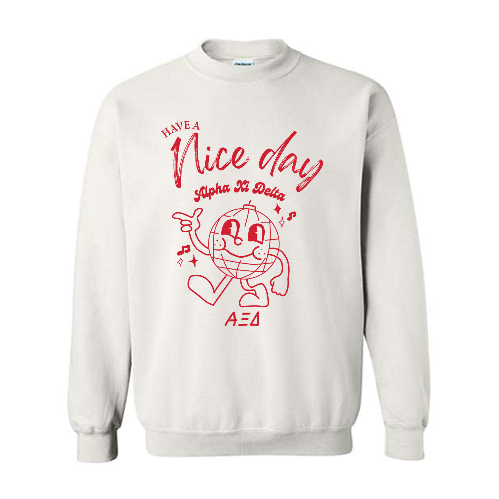 Alpha Xi Delta Have A Nice Day Crewneck Sweatshirt