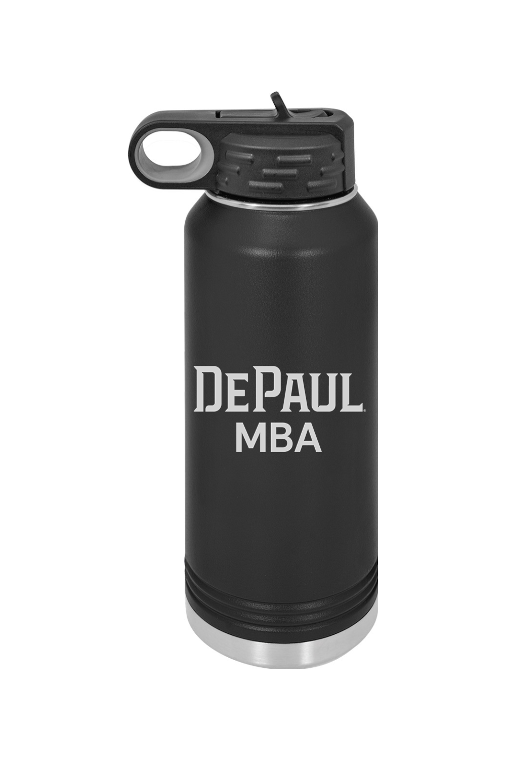 32 oz stainless steel, double-wall insulated water bottle. Screw on lid features an easy flip top, soft rubber finger hold, raised ridges for easy opening and closing, and a rigid & removable straw for easy cleaning.