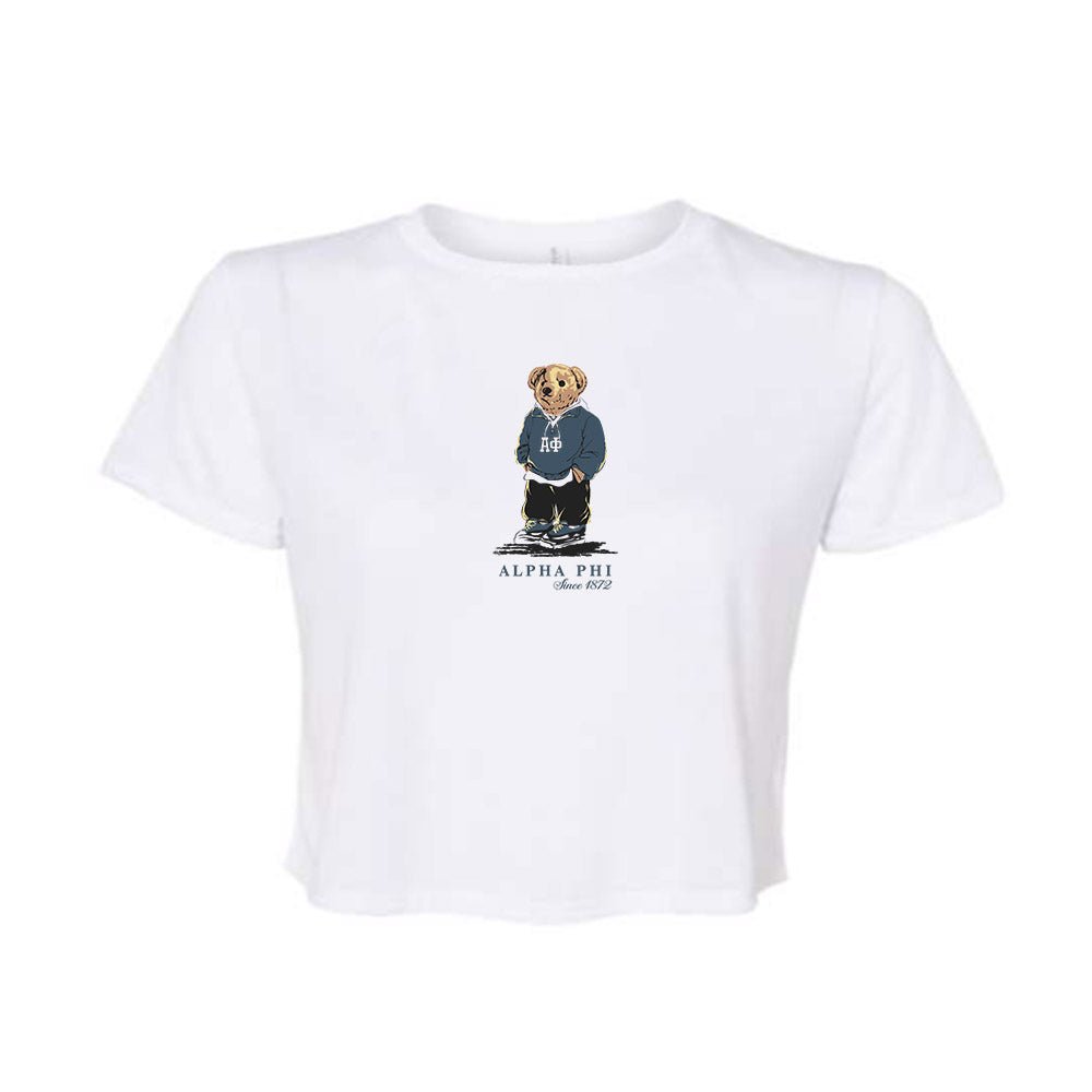 Officially Licensed Flowy Crop Tee for Alpha Phi. Your order will be printed & made to order in 3-7 business days once you have placed your order!