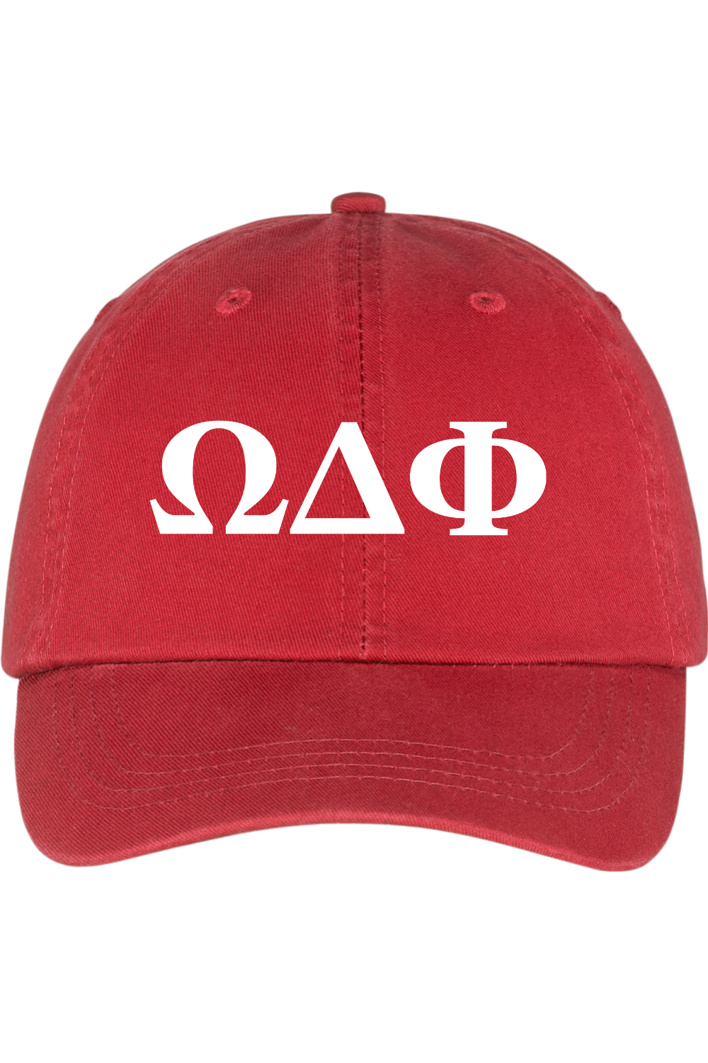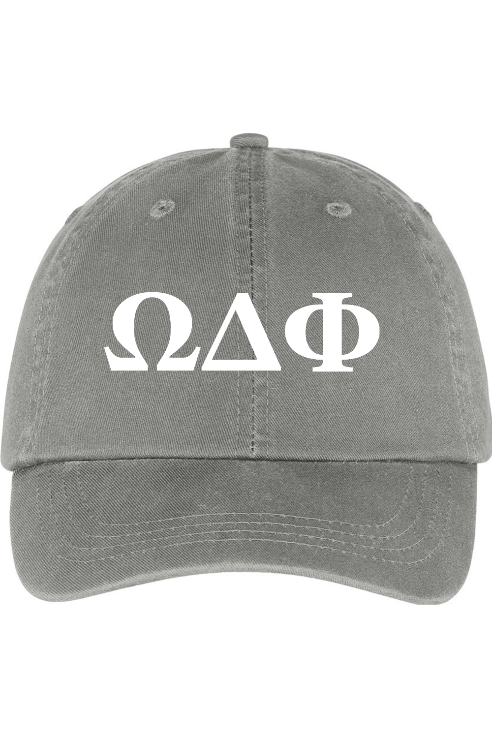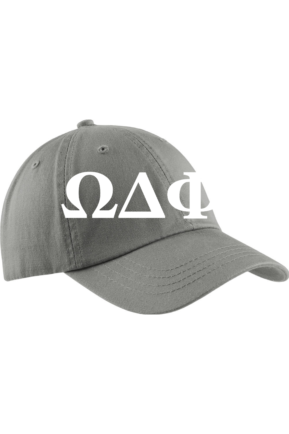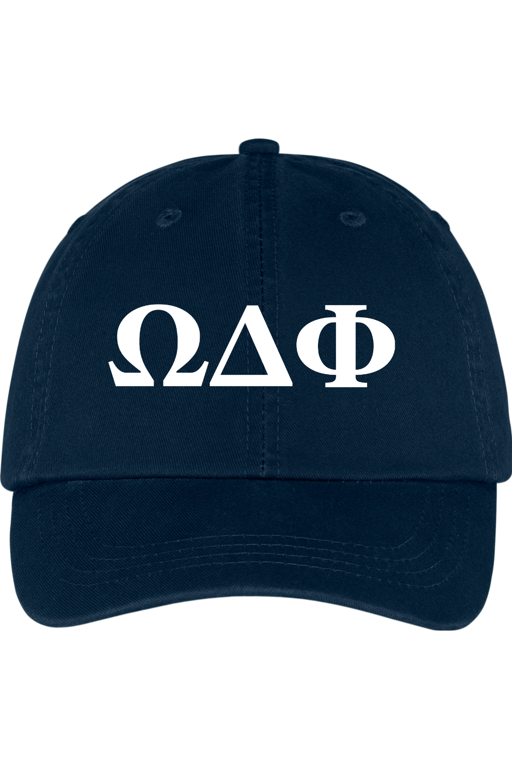 Omega Delta Phi - Washed Twill Cap - White Embroidered Letters