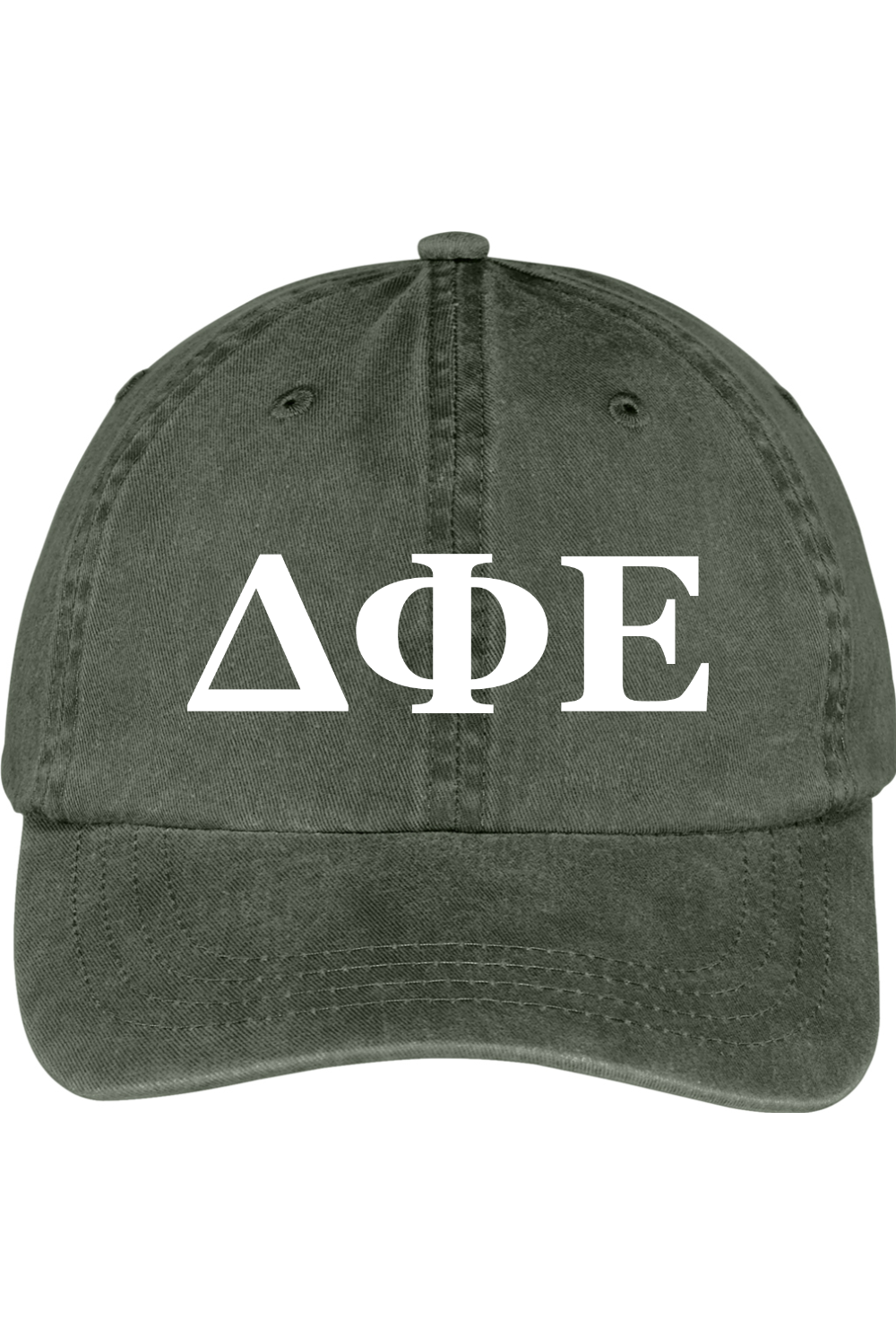 Delta Phi Epsilon - Pigment-Dyed Cap - White Embroidered Letters