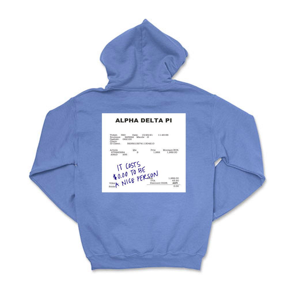 It costs $0 to be a nice person in this designer-inspired Alpha Delta Pi hoodie! Show off your ADPi love in this designer-inspired sweatshirt this fall!