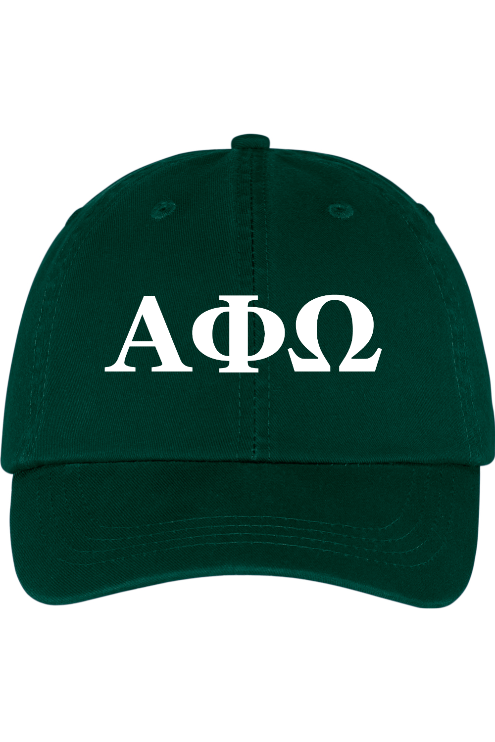 Alpha Phi Omega - Washed Twill Cap - White Embroidered Letters - Hunter is backordered and will ship as soon as it is back in stock.