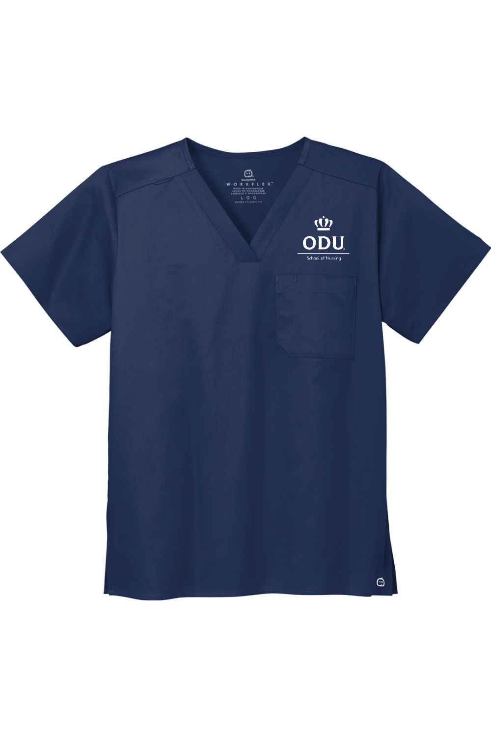 Old Dominion University - School of Nursing - Unisex V-Neck Scrub Top - White logo