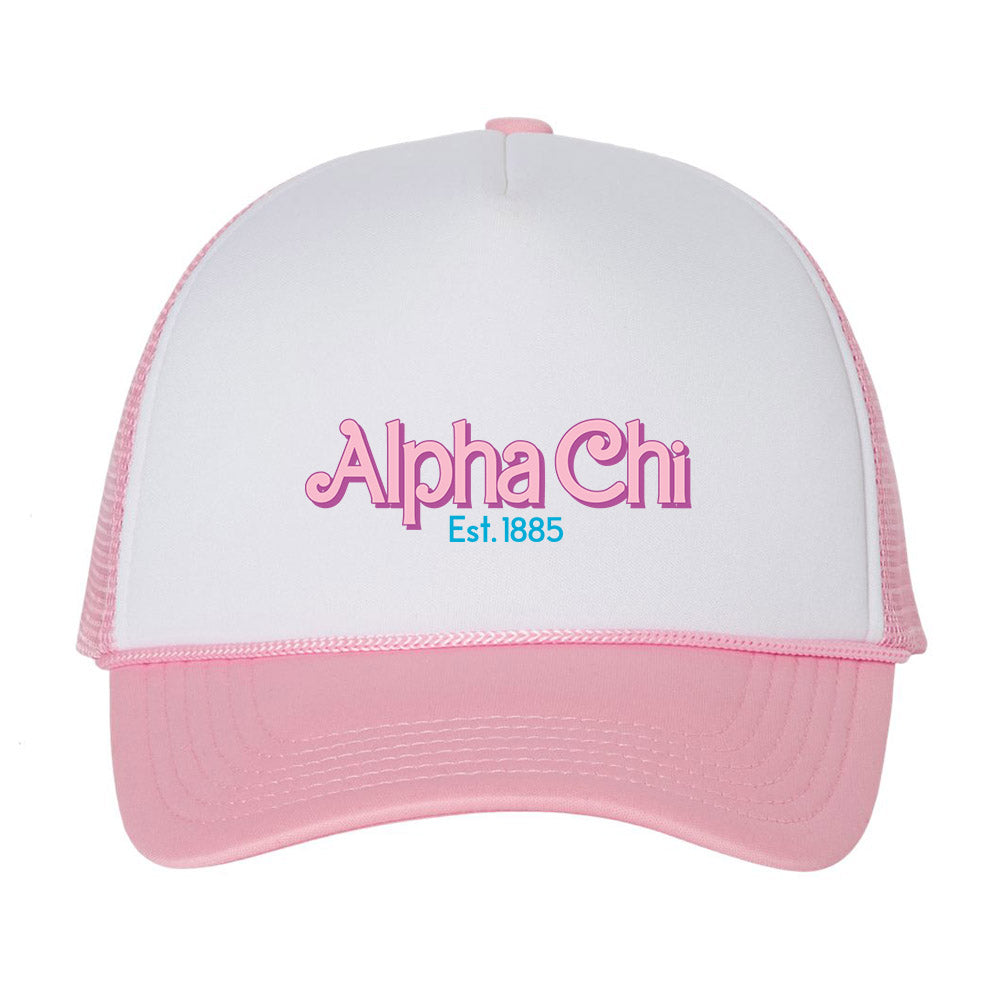 Officially Licensed Foam Mesh-Back Trucker Cap for Alpha Chi Omega. Your order will be printed & made to order in 3-7 business days once you have placed your order!