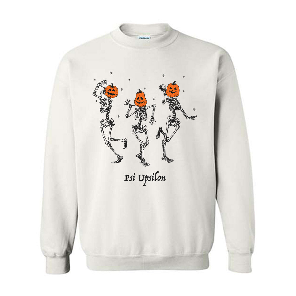Psi Upsilon Pumpkin Head Skeletons Crewneck Sweatshirt