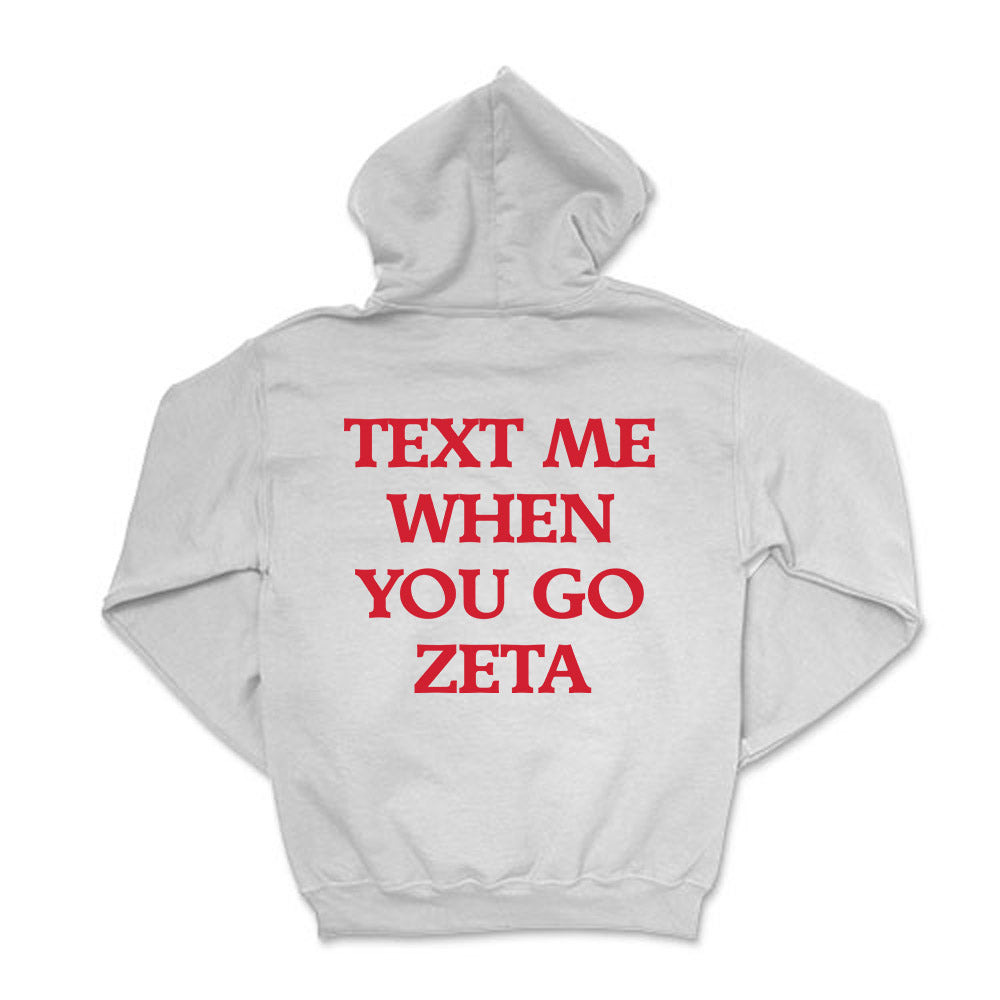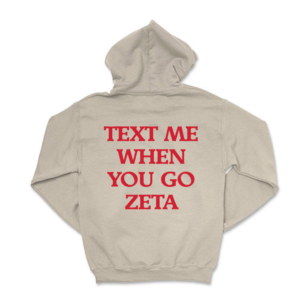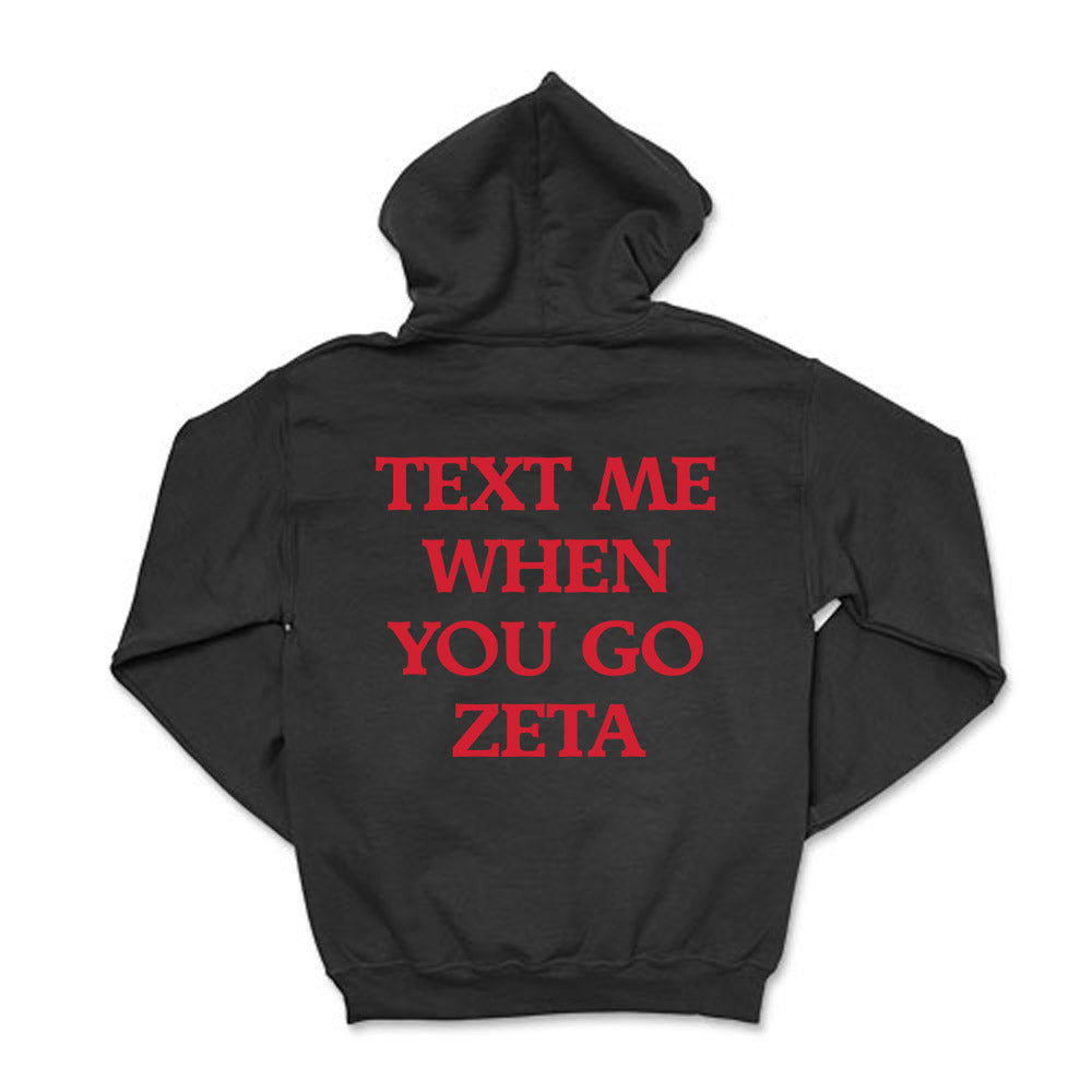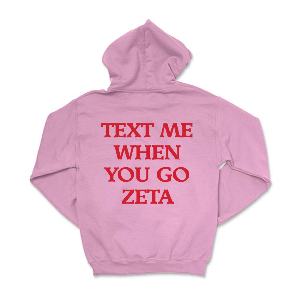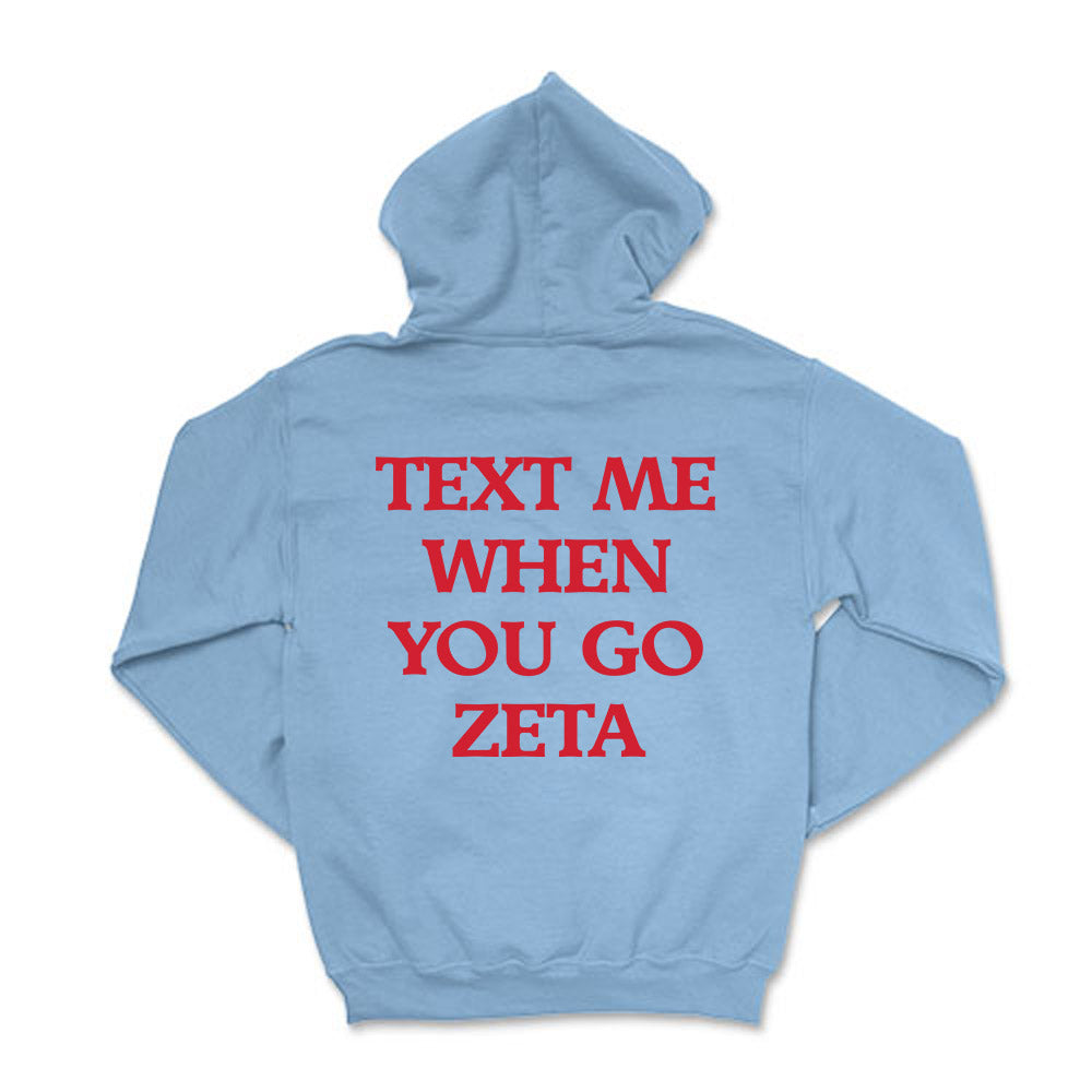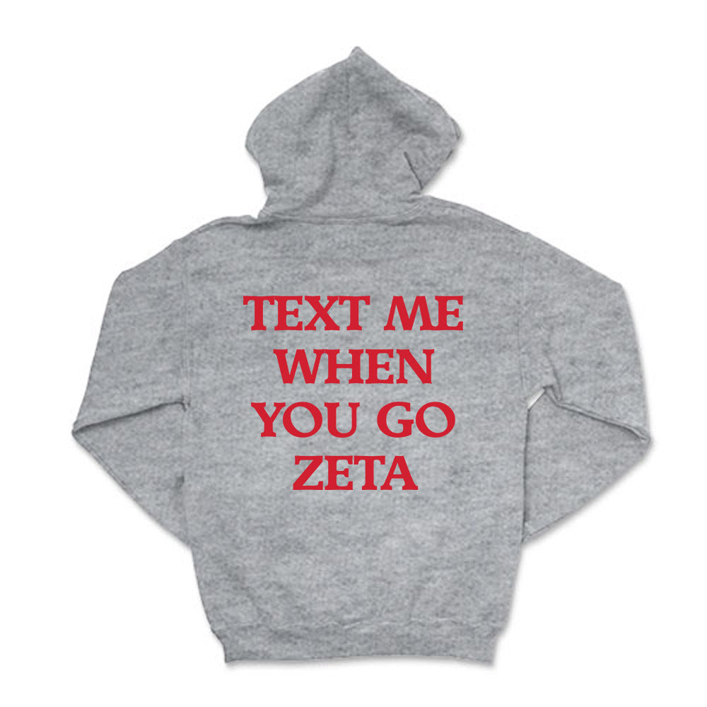 Text me when you go Zeta!  This cozy ZTA  hoodie will be your go-to this coming season!